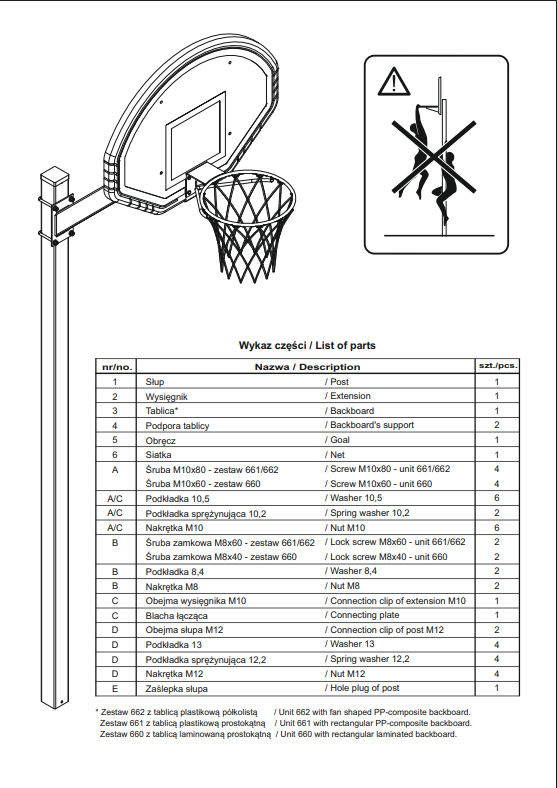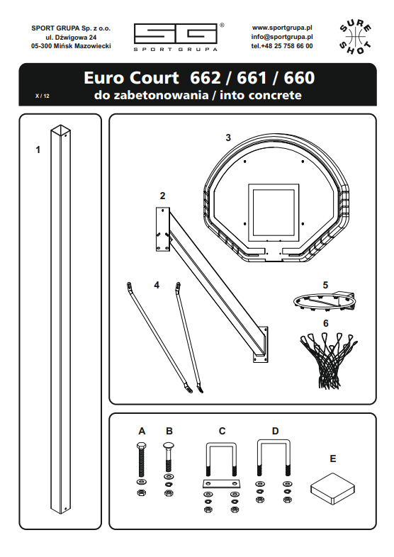 Basketball set 661 Euro Court – certified, durable stand for concreting